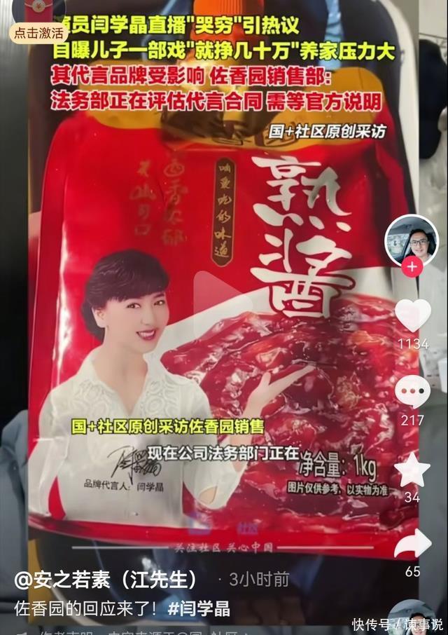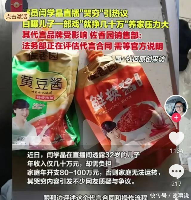 闫学晶哭穷风波持续升级,被网友抵制后,代言产品法务部介入调查