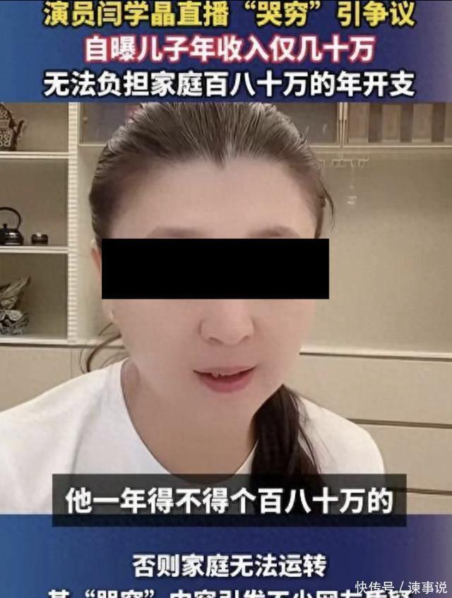 老艺术家在线哭穷 故事的开端,就是一场带着凡尔赛味儿的卖惨直播,曾以朴实农村人形象火出圈的演员闫学晶,突然在直播间倒苦水: 称自己的儿子一家在北京,没个百八十万根本玩儿不转,但他们两口子一年到手还不到50万,所以儿子的压力非常大,自己作为老母亲只能直播带货补贴两口子。