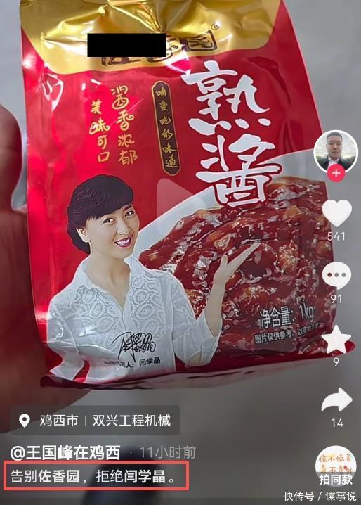作为家喻户晓的区域酱料品牌,某香园可以说是东北人最喜爱的饭搭子,酱豆腐、酱炒鸡蛋饭、大丰收,许多菜品都要靠佐香园大酱的香气画龙点睛。 而品牌方也是看中了闫姐的草根属性,于是双方友好合作多年,不曾某香园完美解决了 “工人往黄豆酱里拉大便” 的谣言风波,却转身栽到了代言人的身上。